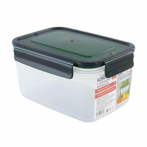Контейнер с замком подходит для хранения продуктов и готовых блюд. Плотно прилегающая крышка на защёлках позволяет взять обед или перекус с собой, не даёт содержимому пролиться или рассыпаться. Подходит как для хранения в холодильнике, так и для разогрева в микроволновой печи. Не содержит бисфенола-А. Объём: 1,35 л. Материал: полипропилен. Товар представлен в ассортименте