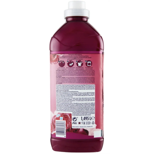 Кондиционер для белья Lenor Gelsomino Scarlatto Divine обладает уникальным ароматом жасмина; он сочетает ноты красных фруктов и роскошных цветов. Аромат держится даже после сушки одежды в сушильной машине.