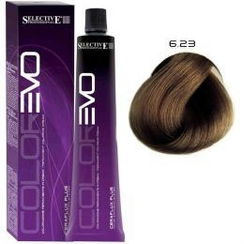 Evo крем – краска 6.23. темный блондин бежево-золотистый Selective интенсивно окрашивает волосы, создавая эффект здоровых, блестящих волос. Уникальные компоненты краски стабилизируют самозащиту волоса, обладают восстанавливающими способностями. Кпределяется по волосу и прекрасно увлажняет его. Краска обладает состав кремообразуюшей консистенцией, которая плотно покрывает волосы и имеет в составе систему компонентов, обладающих ухаживающими саморегулирующими свойствами. Краска имеет приятный аромат.