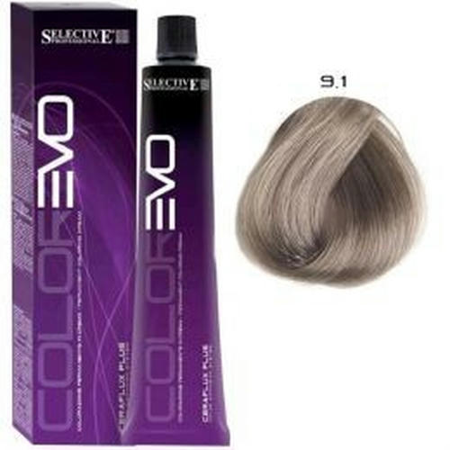 Evo крем – краска 9.1 очень светлый блондин пепельный Selective интенсивно окрашивает волосы, создавая эффект здоровых, блестящих волос. Уникальные компоненты краски стабилизируют самозащиту волоса, обладают восстанавливающими способностями. Кпределяется по волосу и прекрасно увлажняет его. Краска обладает состав кремообразуюшей консистенцией, которая плотно покрывает волосы и имеет в составе систему компонентов, обладающих ухаживающими саморегулирующими свойствами. Краска имеет приятный аромат.