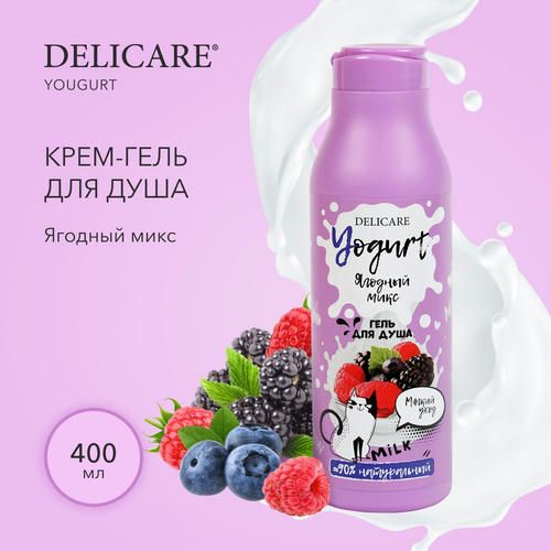 Крем-гель для душа Delicare Yougurt «Ягодный микс» имеет йогуртовую текстуру, которая нежно очищает кожу, сохраняя ее природный баланс. Экстракты ягод глубоко питают кожу, смягчают и тонизируют.