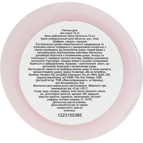 Формула аюрведического крема содержит снижающий выработку меланина комплекс натуральных компонентов, который возвращает коже природный тон, осветляет темные и пигментные пятна. Шафран является антибактериальным веществом, которое борется с недостатками кожи и делает ее безупречной. Сандал действует в роли антисептика, очищает и тонизирует дерму, а куркума деликатно осветляет ее, возвращая здоровый вид.