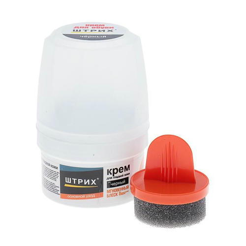 Крем для обуви ШТРИХ Основной уход банка с губкой черный 60 мл