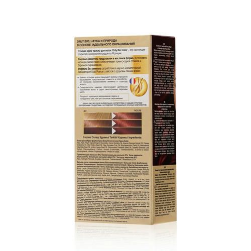 Only Bio – наука и природа в основе идеального окрашивания. Стойкая крем-краска для волос Only Bio – это настоящее открытие в колористике родом из Франции. Впервые краситель представлен в масляной форме, интенсивно насыщен пигментами и обеспечивает превосходное стойкое и бережное окрашивание. Формула без аммиака разработана в научно-косметической лаборатории Silab France с заботой о Ваших волосах: 9 масел в основе краски защищают волосы в процессе окрашивания, предотвращают ломкость и способствуют глубокому проникновению пигмента в структуру волоса. Omega-кислоты камелии обеспечивают длительное увлажнение волос и дарят многогранные переливы цвета. 90% от активных компонентов в составе краски составляют масла. Результат: идеальное закрашивание седины и попадание в цвет, как при салонном окрашивании.