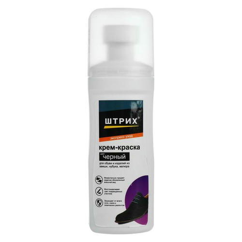 Крем-краска от торговой марки «Штрих» защищает обувь от негативного воздействия внешней среды, моментально обновляет поверхность, закрашивает потёртые места и царапины, не нанося вреда структуре материала.