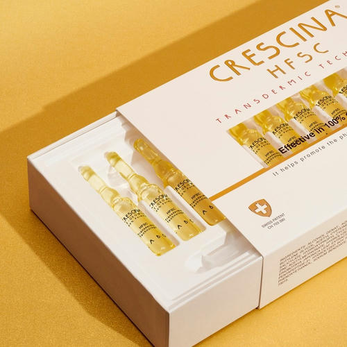 Кресцина Трасдермик/ Crescina Transdermic Re-Growth HFSC для возобновления роста волос – активатор собственных стволовых клеток волосяных фолликул. Это ампульное косметическое средство поверхностного нанесения, восстанавливающее физиологический рост волос при постепенном уменьшении их количества и качества из-за снижения активности волосяных фолликул. Ампулы предназначены для использования при поредении волос, вызванном физиологическими, но не патологическими причинами. Не оказывают действия на полностью атрофированные фолликулы.
