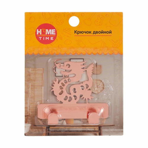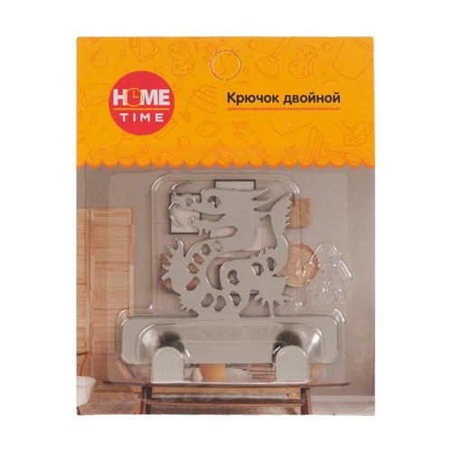 Крючок двойной, Home Time, украшен стильной фигуркой дракона. Самоклеящийся, подробная инструкция указана на упаковке. Состав: нержавеющая сталь, EVA. Товар представлен в ассортименте