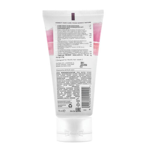 Cocтав: аква (вода), цетиариловый спирт, хлорид винеримония, диметикон, глицерин, цэтиловый спирт, стеариловый спирт, изопропил -миристат, оксикокк палустрис (Cranberry), глицерил -мета -гидропсиль, лауриловый спирт, пэг-20 стеарат, бегенамидопропилдиметиламин, гидроксипропилгуар, гидроксипритримоний хлорид, пантенол, сахарид изомерат, миристиловый спирт, с11-15 парет-7, с12-16 парет-9, пэг-8, тридекет-12 95, токоферол, аскорбил пальмитат, цитрат натрия, аскорбиновая кислота, масло семян helianthus annuus (подсолнечник), экстракт листа rosmarinus officinalis (розмарин), лимонная кислота, молочная кислота, бензоат натрия, сорбат калия, парфюм (аромат), лиминалол.