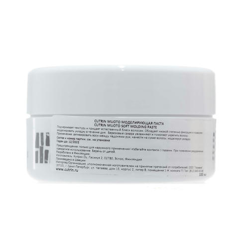 Паста моделирующая для волос MUOTO подчеркивает текстуру и придает естественный блеск волосам. Обладает низкой степенью фиксации и позволяет моделировать укладку в течение дня. Березовые сахара увлажняют и помогают укрепить волосы.