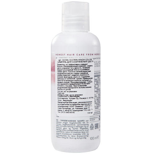 Деликатно, но эффективно очищает волосы. Инновационный комплекс защиты цвета сохраняет его яркость. Шампунь придает роскошный блеск и усиливает сияние цвета. Богатое антиоксидантами натуральное масло семян северной клюквы помогает защитить волосы от внешних факторов стресса. Содержит фильтры от UVA/UVB лучей.