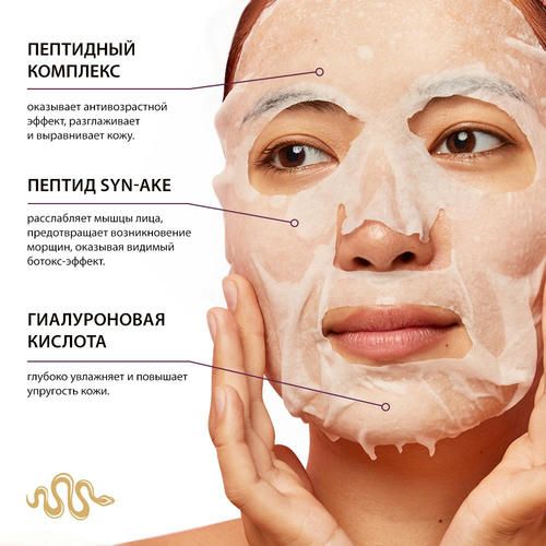 Маска для лица Benabi c пептидом змеиного яда помогает уменьшить дряблость и вялость кожи, придает ей мягкость и свежесть, интенсивно увлажняет кожу, оказывая видимый омолаживающий эффект. Регулярное использование тканевой маски сделает кожу более молодой, гладкой и упругой.