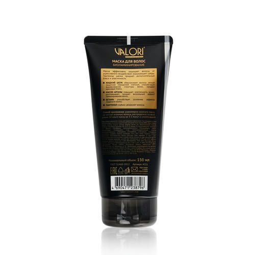 Маска для волос Valori Professional ” Биоламинирование ” эффективно защищает волосы от агрессивного воздействия окружающей среды. Протеины шелка придают дополнительный блеск и эластичность.
