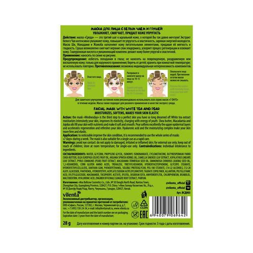 Маска Vilenta 7 Days для лица во время просмотра сериала, с белым чаем и грушей "Лёгкая среда", для всех типов кожи 28мл