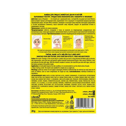 Маска Vilenta 7 Days для лица во время просмотра сериала, с белым чаем и грушей "Лёгкая среда", для всех типов кожи 28мл