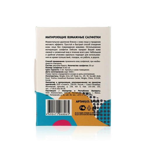 Матирующие салфетки Delicare обеспечивают моментальное удаление блеска с кожи лица и придание матового эффекта. Простой и быстрый способ очищения кожи лица без повреждения макияжа. Использование матирующих салфеток Delicare придает вашей коже свежий и ухоженный вид в течение всего дня. Небольшая и удобная упаковка идеально подходит для использования во время путешествий, поездок, на работе, в дороге.