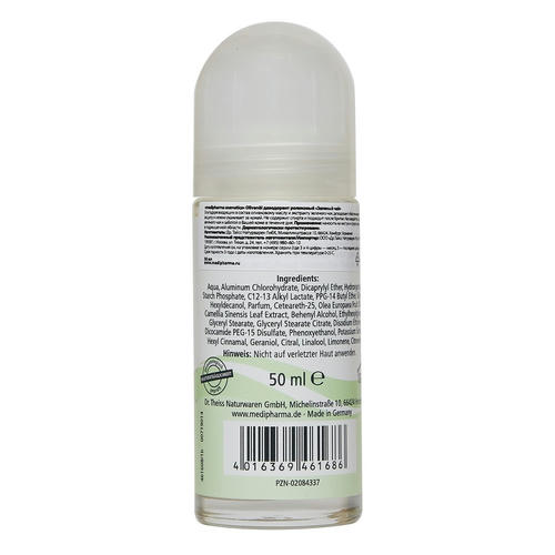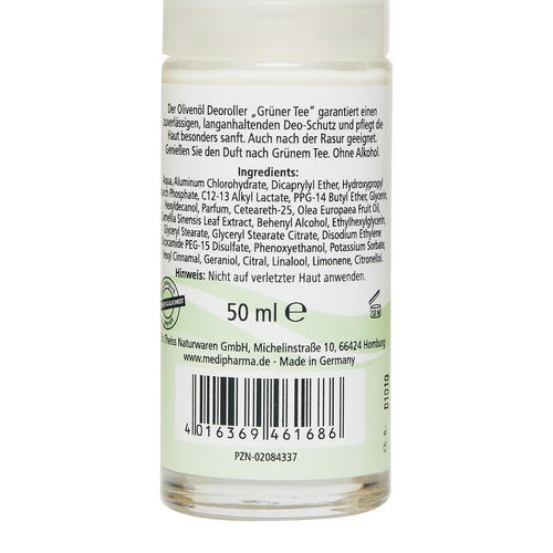 Medipharma cosmetics Oliven_l дезодорант роликовый “Зеленый чай” (ранее D’oliva дезодорант роликовый “Зеленый чай”) создан на основе высокоэффективной формулы, которая содержит тосканское оливковое масло первого холодного отжима. Эффективный состав гарантирует бережный уход за кожей и свежесть на протяжении 24-х часов. Дезодорант не содержит спирта, успокаивает раздражение кожи после бритья, придает ощущение свежести.