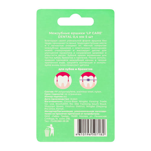 Благодаря своей уникальной форме ершики без труда проникают в самые труднодоступные места и с легкостью очищают их. Мягкое покрытие межзубных ершиков с эластичным окончанием нежно стимулирует и массирует десны для улучшения кровотока и сохранения здоровья и упругости десен. Зубной ершик незаменим для чистки зубов, брекетов и протезов.