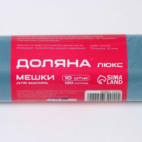 Мешки для мусора Доляна «Люкс», 120 л, 70x110 см, 20 мкм, ПНД, 10 шт, цвет зелёный