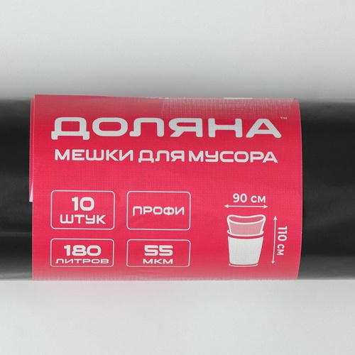 Мешки для мусора Доляна «Профи», 180 л, 90x110 см, 40 мкм, ПВД, 10 шт, цвет чёрный