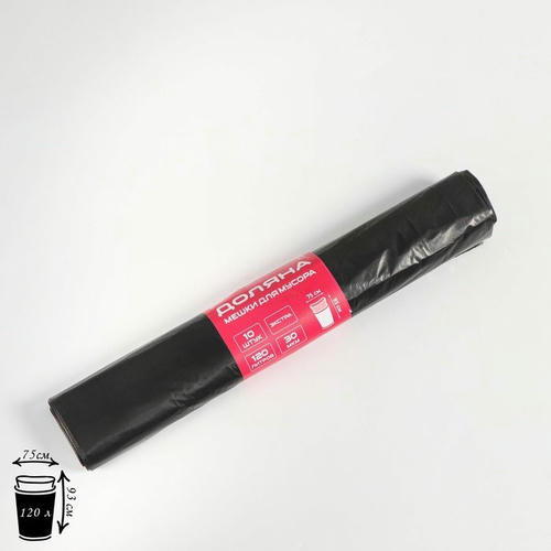 Мешки для мусора Доляна «Профи», 120 л, 20 мкм, 68x106, ПВД, 10 шт, цвет чёрный