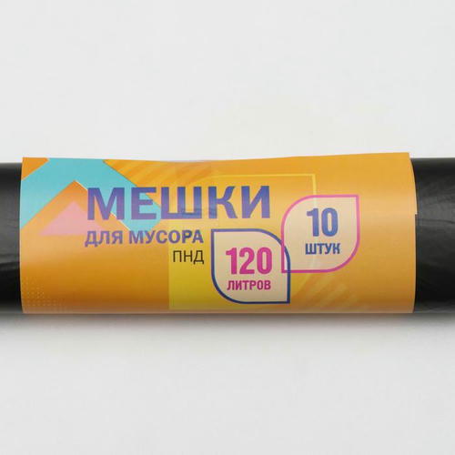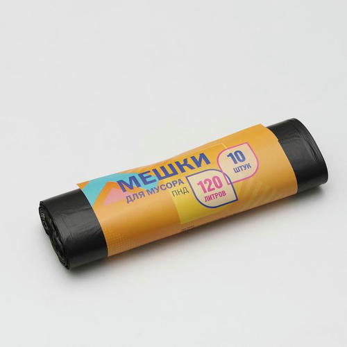 Мешки для мусора,120 л, 80 мкм, 70x108 см, ПВД, 10 шт, цвет чёрный