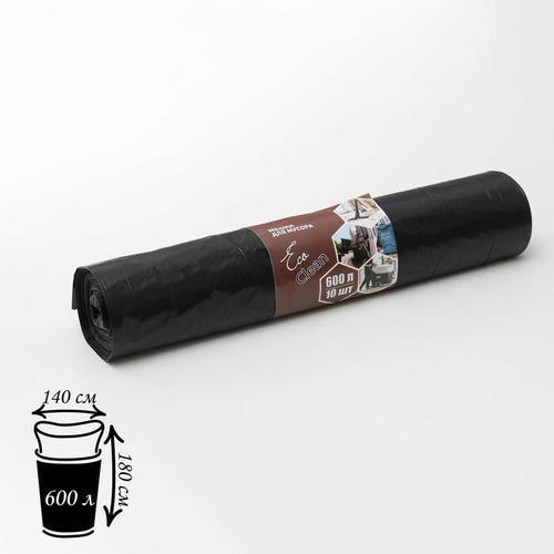 Мешки для мусора Ecoclean, 400 л, 45 мкм, 120x150 см, ПВД, 10шт, цвет чёрный