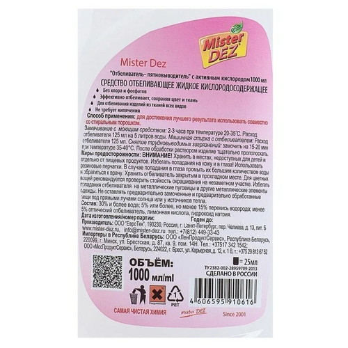 Кислородный жидкий отбеливатель подходит для стирки детского белья, любых видов цветных и белых тканей. Кислородный отбеливатель для стирки разработан для удаления различных загрязнений и стойких пятен. Отбеливатель для белья безопасен для стиральной машины. Для достижения наилучшего результата средство необходимо использовать совместно со стиральным порошком