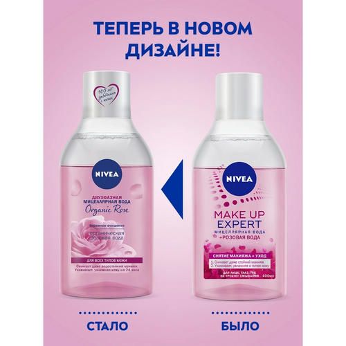 Мицеллярная вода для лица, глаз и губ Nivea Organic rose бережное очищение 400мл