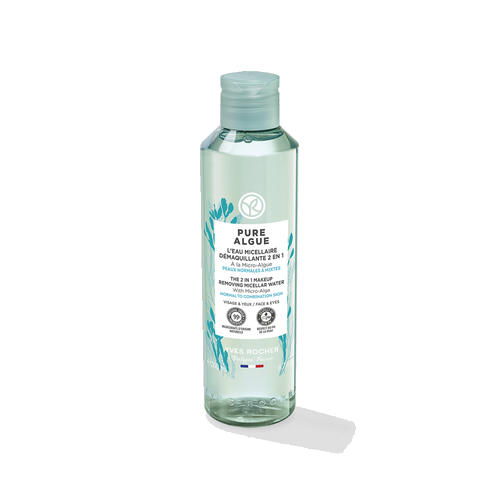 Мицеллярная Вода Для Снятия Макияжа 2 в 1 очищает кожу от загрязнений и удаляет даже стойкий макияж, оставляя кожу идеально очищенной, увлажненной и сияющей. В состав входят Микроводоросли Tetraselmis, выращенные согласно принципам агроэкологии у берегов Бретани, во Франции, и обладающие способностью насыщать кожу кислородом*.