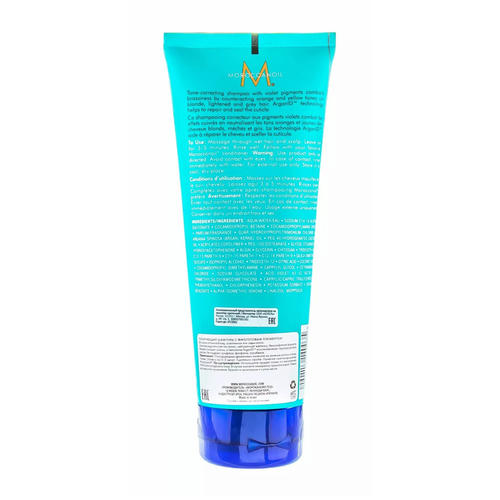 Тонирующий шампунь Moroccanoil с фиолетовым пигментом станет незаменимым помощником для обладательниц светлых, осветленных и седых волос.