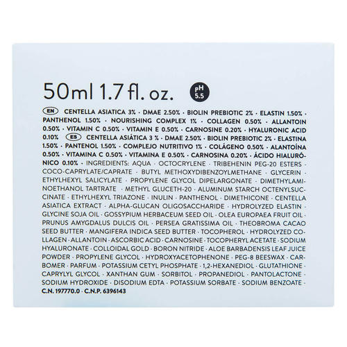 Состав: aqua, octocrylene, tribehenin peg-20 esters, coco-caprylate / caprate, butyl methoxydibenzoylmethane, glycerin, ethylhexyl salicylate, propylene glycol dipelargonate, dimethylaminoethanol tartrate , methyl gluceth-20, aluminum starch octenylsuccinate, ethylhexyl triazone, inulin, panthenol, dimethicone, centella asiatica extract, alpha-glucan oligosaccharide, hydrolyzed elastin, glycine soja oil, gossypium herbaceum seed oil, olea europaea fruit oil, prunus amygdalus dulcis oil, persea gratissima oil, theobroma cacao seed butter, mangifera indica seed butter, tocopherol, hydrolyzed collagen, allantoin, ascorbic acid, carnosine, tocopheryl acetate, sodium hyaluronate, colloidal gold, boron nitride, aloe barbadensis leaf juice powder, propylene glycol, hydroxyacetophenone, peg-8 beeswax, carbomer, parfum, potassium cetyl phosphate, 1, 2-hexanediol, glutathione, caprylyl glycol, xanthan gum, sorbitol, propanediol, pantolactone, sodium hydroxide, disodium edta, potassium sorbate, sodium benzoate