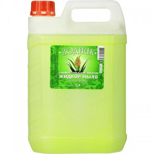 Мыло жидкое: АМС Зодиак 5л туалетное АнтибактериальноеКосметическое жидкое мыло с антибактериальным компонентом – триклозан. Приемущества: Представляет собой высококонцентрированный прозрачный слабоокрашенный гель. Обладает высокой моющей и обезжиривающей способностью, дезинфицирующим эффектом, не вызывает сухость кожи и ее раздражение. Эффективно удаляет грязь, масложировые и белковые загрязнения, устраняет резкие неприятные запахи, увлажняет, дезинфицирует и дезодорирует кожу. Жидкое мыло антибактериальное эффективно работает в воде любой жесткости и температуры. Химико-физические свойства: уровень pH сбалансирован. Замерзает. После размораживания полностью восстанавливает свои химико-физические свойства, реологию и моющую способность. Вязкость мыла незначительно зависит от высоких температур окружающей среды. Особенности: Высокая концентрация моющей основы. Обладает дезинфицирующим эффектом. Гелеобразная структура – экономный расход. Вязкость незначительно зависит от высоких температур окружающей среды. Внешний вид: Однородный прозрачный слабоокрашенный в зеленый цвет гель. Допускается легкая опалесценция. Запах: растительный (алоэ-вера).