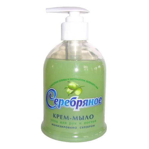 Крем-мыло Серебряное с маслом оливы и экстрактом зеленого чая 300 млПредназначено для гигиенического ухода за кожей рук, лица и телаИонизировано серебромУникальная формула с натуральным рН нежно очистит вашу кожу и защитит ее от потери влаги, обеспечивая длительную свежесть и мягкость. • Масло оливы обеспечивает мягкое и нежное воздействие на кожу, предохраняя ее от сухости. • Экстракт зеленого чая обогащен витамином С, танином, эфирными маслами, которые питают, смягчают кожу и укрепляют ногти. • Обладает противовоспалительным и бактерицидным действием• Ионы серебра являются идеальной природной защитой от бактерий