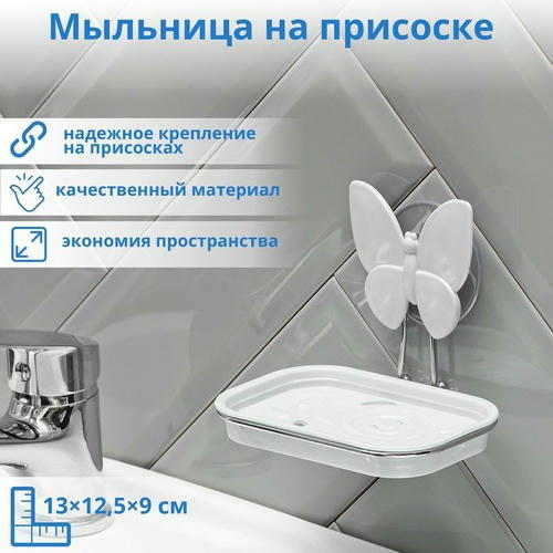 Мыльница пластиковая на присоске «Бабочка», 13x11x9,5 см, цвет МИКС