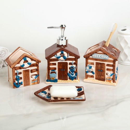 Набор аксессуаров организует пространство и станет стильным украшением Вашей ванной комнаты. За счет сдержанного дизайна данный керамический набор в ванную подойдет к любому дизайну ванной комнаты. Набор состоит из 4 предметов: 2 стакана, мыльница, дозатор.