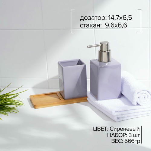 Набор аксессуаров для ванной комнаты SAVANNA Square, 3 предмета (дозатор для мыла, стакан, подставка), цвет сиреневый