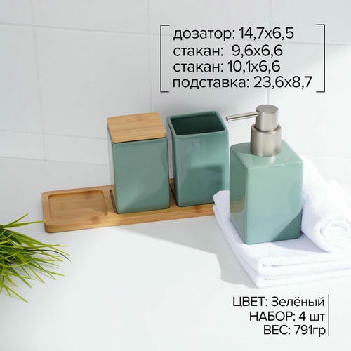 Набор аксессуаров организует пространство и станет стильным украшением Вашей ванной комнаты. За счет сдержанного дизайна данный керамический набор в ванную подойдет к любому дизайну ванной комнаты. Набор состоит из 4 предметов: дозатор, 2 стакана, подставка.