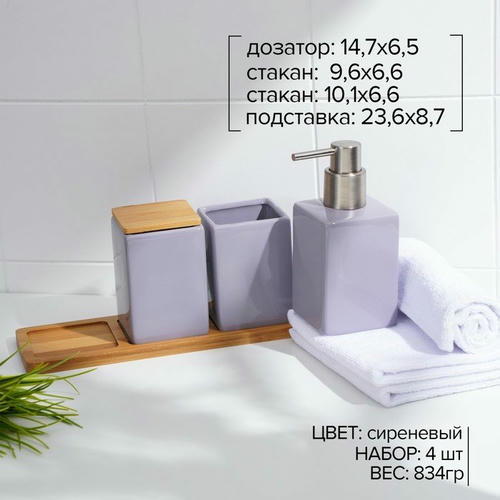 Набор аксессуаров организует пространство и станет стильным украшением Вашей ванной комнаты. За счет сдержанного дизайна данный керамический набор в ванную подойдет к любому дизайну ванной комнаты. Набор состоит из 4 предметов: дозатор, 2 стакана, подставка.