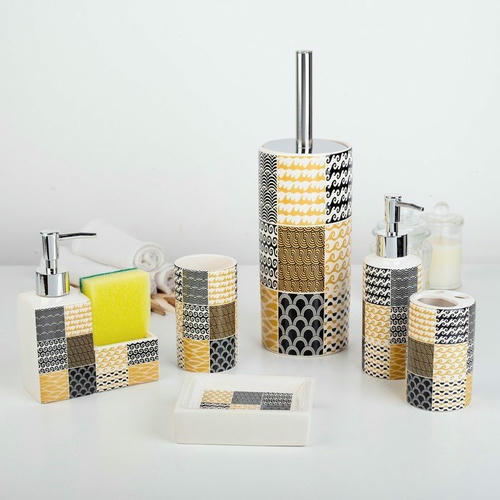 Набор аксессуаров организует пространство и станет стильным украшением Вашей ванной комнаты. За счет сдержанного дизайна данный набор в ванную подойдет к любому дизайну ванной комнаты. Набор состоит из шести предметов.