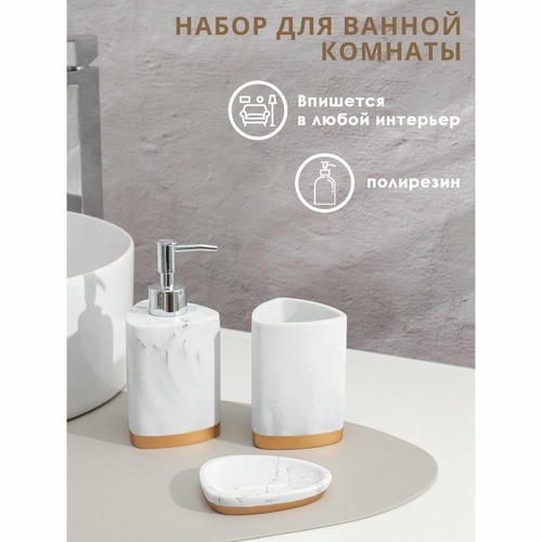Комплект аксессуаров “Мрамор” станет отличным выбором для подарка близким и друзьям, а также поможет обновить интерьер вашей ванны и сделать его ещё более комфортным и стильным.