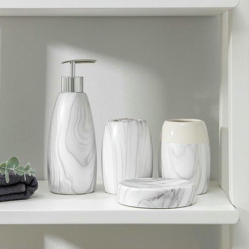 Набор аксессуаров для ванной комнаты «Мрамор», 4 предмета (дозатор 400 мл, мыльница, 2 стакана), цвет белый