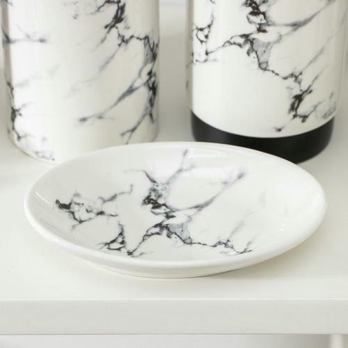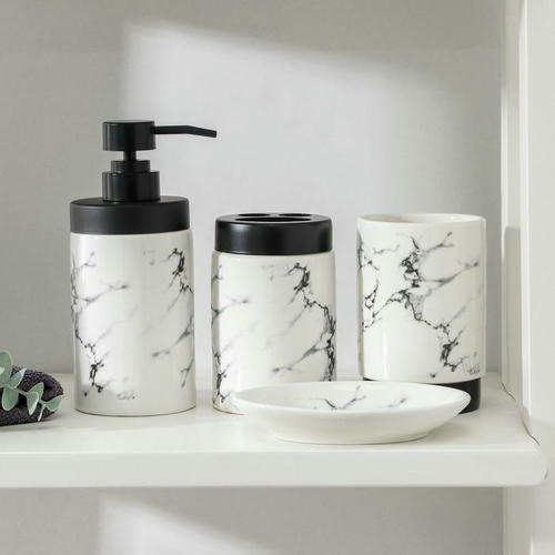 Набор аксессуаров для ванной комнаты «Мраморный металл», 4 предмета (мыльница, дозатор 400 мл, два стакана), цвет белый
