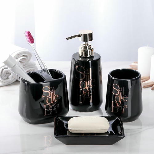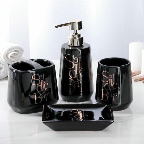 Набор аксессуаров для ванной комнаты Bonjour, 4 предмета (дозатор 400 мл, мыльница, 2 стакана), цвет чёрный