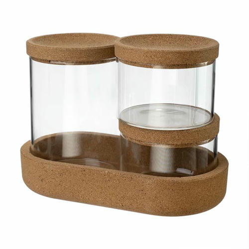 Набор банок на подставке, O`Kitchen – удобное решение для хранения круп, специй и других сыпучих продуктов. В комплекте 3 банки и подставка, позволяющая компактно их разместить на столе или в шкафу. Объём банок: 370 мл – 1 шт., 180 мл – 2 шт. Состав: боросиликатное стекло, пробка. Не мыть в посудомоечной машине
