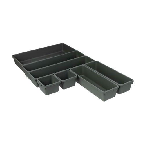 Набор лотков поможет организовать хранение мелочей на кухне, в салоне, мастерской или в офисе. В набор входят 7 лотков разного размера (80х80 мм – 2 шт., 80х230 мм – 2 шт., 80х310 мм – 2 шт., 160х310 мм – 1 шт.). Лотки легко компонуются друг с другом, образуя удобный модульный органайзер. Состав: полипропилен. Товар представлен в ассортименте