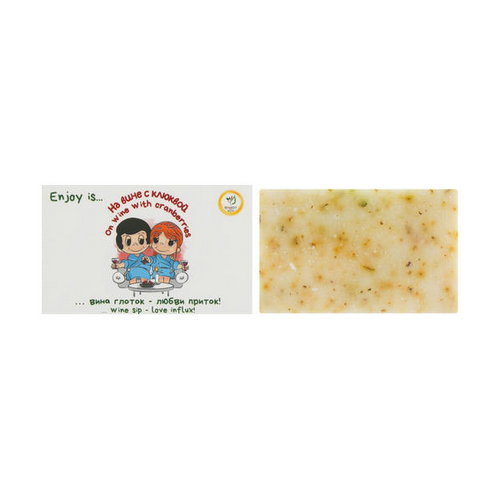 Вино и настойка клюквы — ингредиенты натурального мыла, созданного мастерами грузинского бренда Enjoy & Joy. В составе растительны масла — оливы, ши, кокосовое, льняное, молотые листья клюквы, минеральная вода. Мыло производится по оригинальному рецепту. Благодаря особой технологии в ингредиентах сохраняются все полезные вещества. Мыло очень приятно пахнет — этот тонкий аромат обладает антидепресантными свойствами. Мягкая пена устраняет загрязнения и одновременно насыщает клетки кожи влагой, витаминами и минералами.