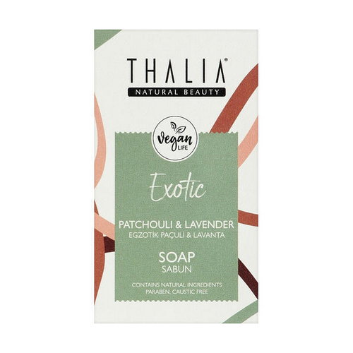 Мыло Thalia с экзотическим теплым ароматом пачул отлично очищает и подтягивает кожу, при этом не пересушивая ее. Экстракт лаванды в составе мыла способствует питанию и увлажнению, прекрасно освежает кожу, успокаивает ее и даже уменьшает чувствительность. Более того, запах лаванды оказывает успокаивающее действие на нервную систему, помогает расслабиться и сбалансировать дух, тело и разум. Продукт очарует вас своим удивительным ароматом, а веревка и удобная форма мыла обеспечат легкость в использовании во время купания. Подходит для ухода за лицом и телом. Состав мыла Thalia дружен к коже и не содержит щелочей, парабенов и вредных для здоровья веществ.