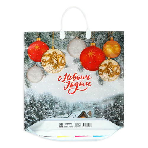 Пакет украшен ярким новогодним дизайном, который поднимет настроение и добавит праздничной атмосферы.