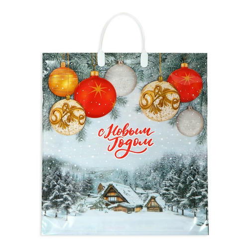 Пакет новогодний полиэтиленовый с пластиковой ручкой размером 40 х 44 см — идеальный вариант для упаковки подарков и сувениров.