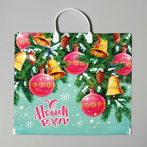 Новый год. Пакет “Динь Дон”, полиэтиленовый с пластиковой ручкой, 37х34см – 10 шт.